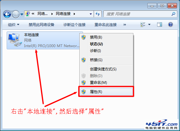 3、右击”本地连接”选择”属性”选择”Internet协议版本4(TCP/IPv4)”,并点击”属性”。